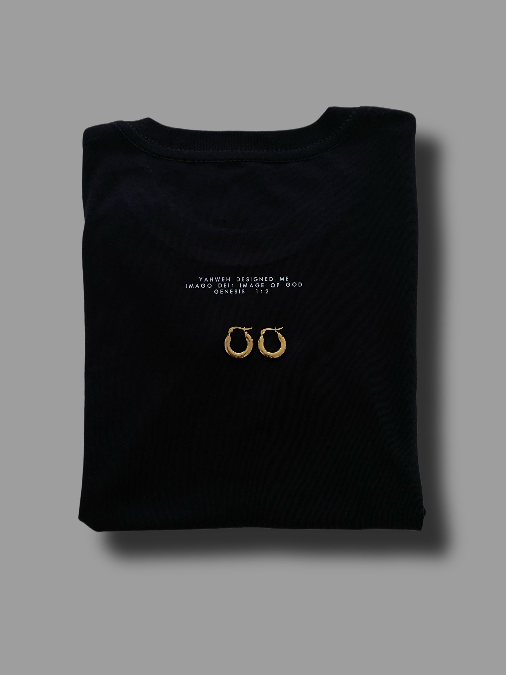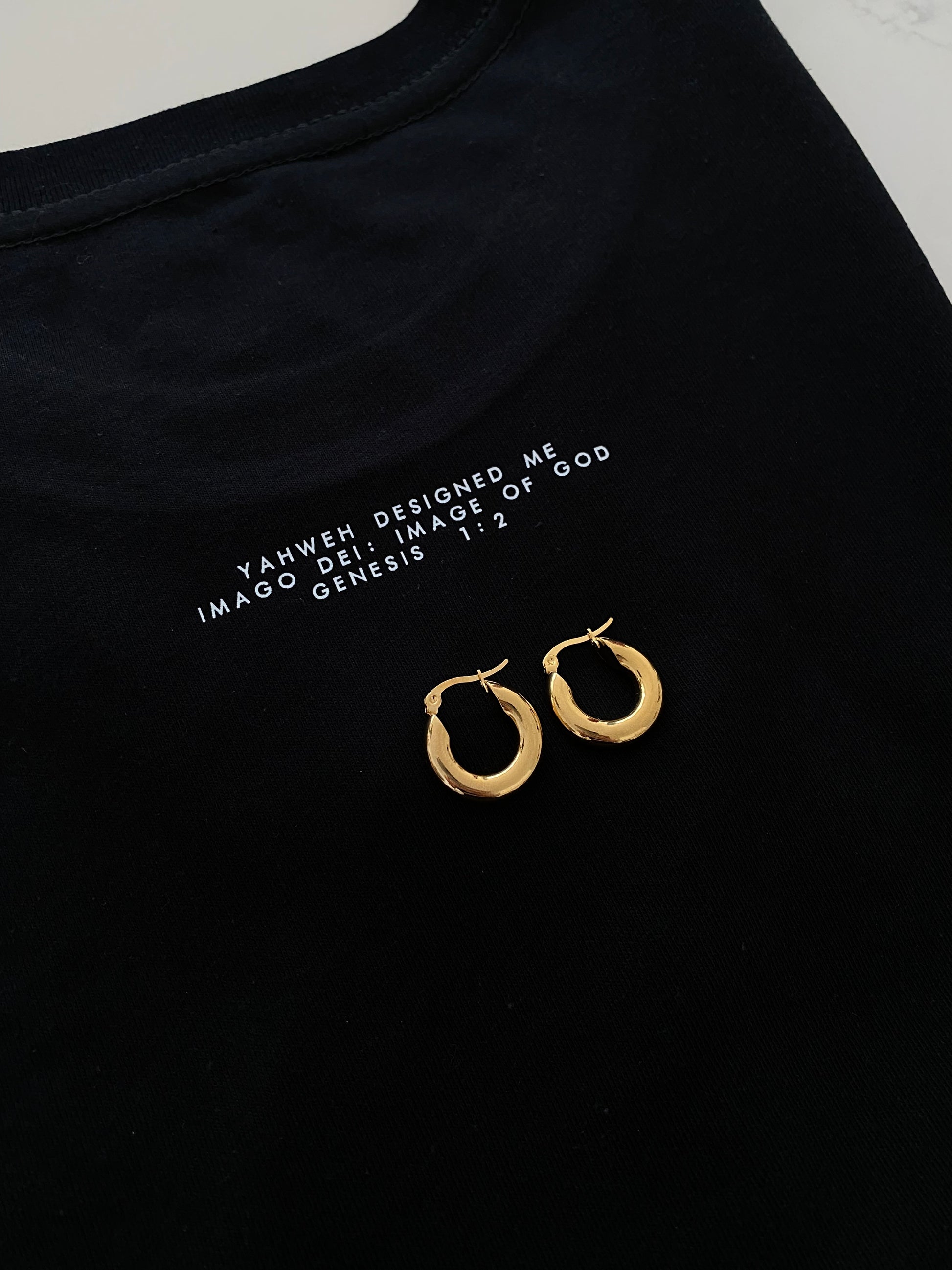 Imago Dei: Image of God. Genesis 1:27 is a special addition to our range (Detail on the back of the shirt) The most essential grab and go item in our range with a thoughtful reminder of our Designer above.